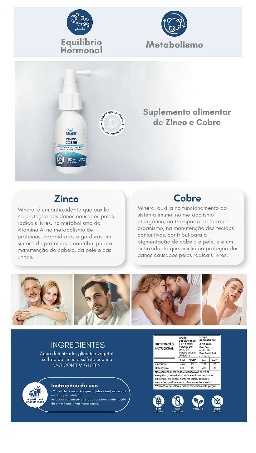 Zinco Cobre - Suplemento Alimentar Líquido Spray 60 ml