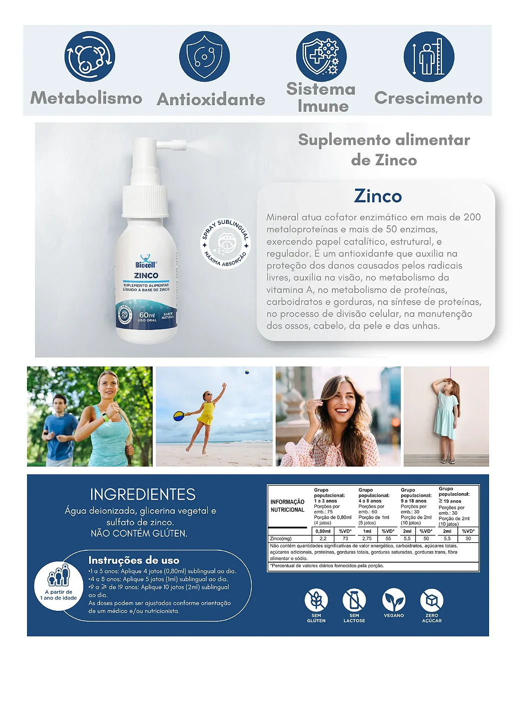 Zinco - Suplemento Alimentar Líquido Spray 60 ml